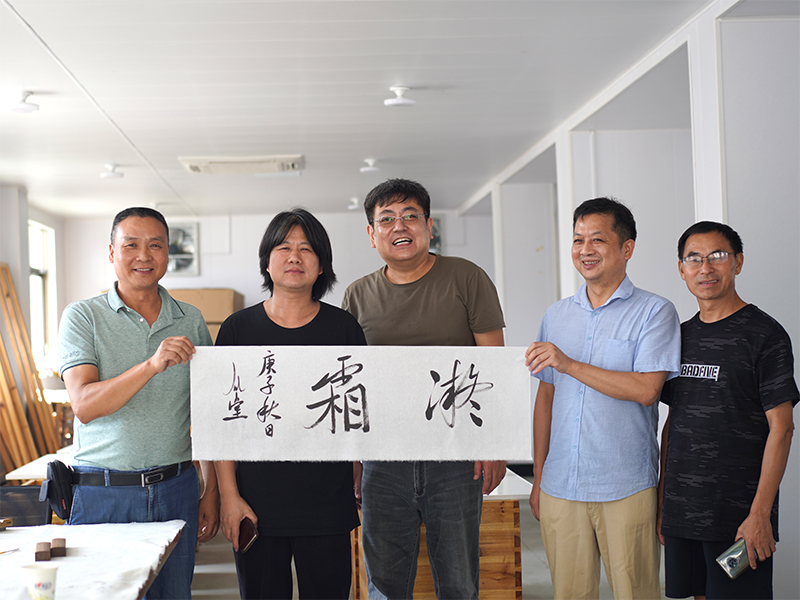 浙江省文化廳新安傳統(tǒng)文化調(diào)研,畫家樓森華、樓秋華和版畫藝術家王超在公司。徽州楮皮紙