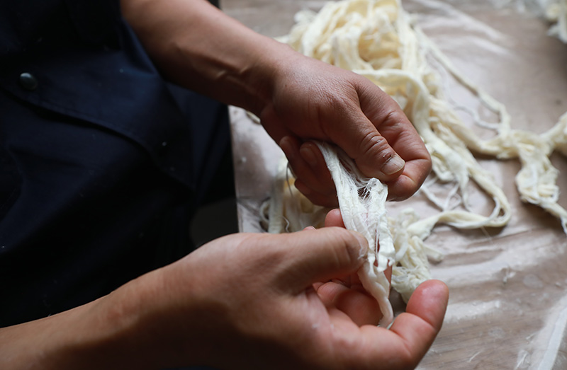 徽州的楮皮紙以楮皮為主要原料,采用傳統(tǒng)的手工抄紙工藝經(jīng)過泡皮、蒸煮、化皮等27道工序,以手工精細制作而成,產(chǎn)品有楮皮紙、云龍紙、落水紙、皺紋紙、棉紙等幾十個品種。 休寧縣位于地處皖南,黃山腳下,地處暖溫帶半濕潤氣候區(qū),物產(chǎn)資源豐富,境內(nèi)公